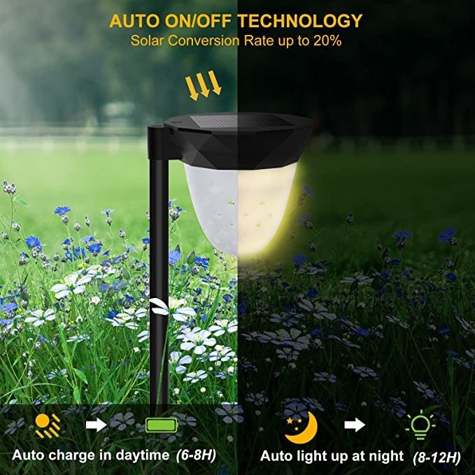 Beschrijving van op zonne-energie aangedreven tuinverlichting